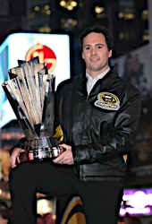 05 December 2008 - Carl Edwards with his second place finish trophy at the 2008 ...