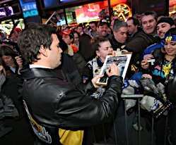 04 December 2008 - Jimmie Johnson signs autographs in Times Square during Champ...
