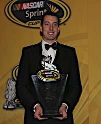 05 December 2008 - Kyle Busch and his tenth place finish trophy at the 2008 NASC...