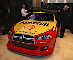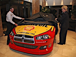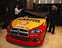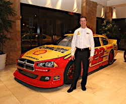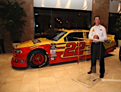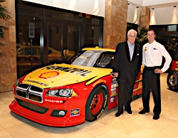 02 December, 2010: Kurt Busch and Roger Penske during Shell announcement during...