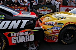 02 December, 2010: Clint Bowyer gives Jeff Gordon a push during the Victory Lap ...