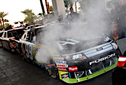 02 December, 2010: Carl Edwards car overheats during the Victory Lap during 2010...