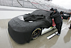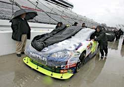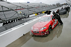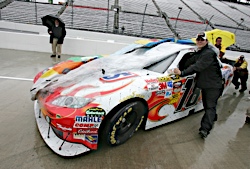 26 March 2010-Crew Members push Kyle Busch's car back to the garage after rain c...