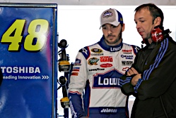 27 March 2010-Jimmie Johnson, Chad Knaus during practice for the Goody's 500 at ...