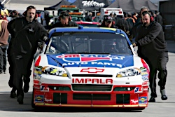 26 March 2010-Crew Members push Dale Earnhardt Jr.'s car back to the garage afte...