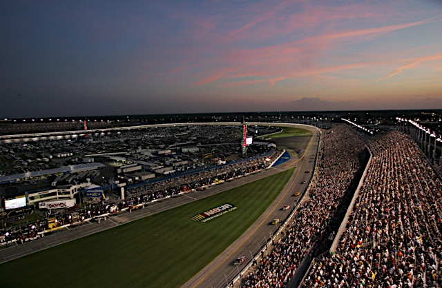17 February 2008: The sun sets over the Daytona 500 NASCAR Sprint Cup series race at Daytona International Speedway in Daytona Beach, FL. (HHP/Erik Perel)