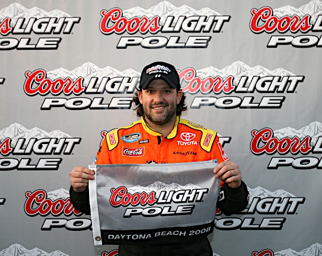 15 February 2008 - Tony Stewart wins the pole for Camping World 300 at Daytona International Speedway in Daytona Beach Fl. (HHP/ Harold Hinson)