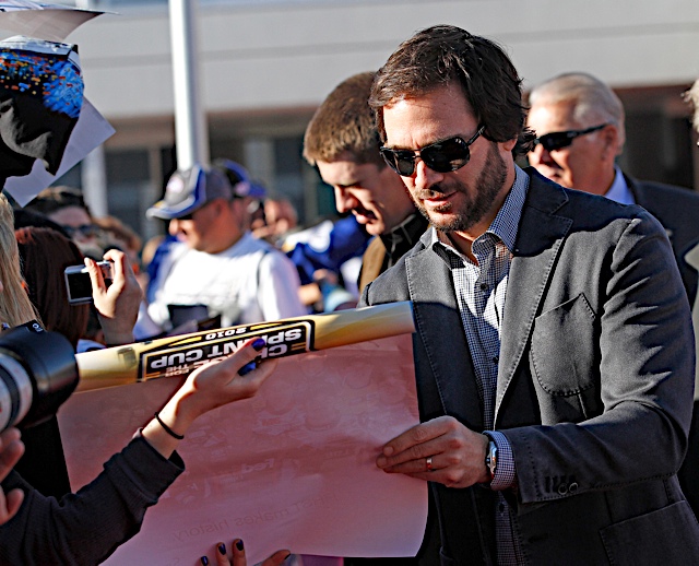 caption: 01 December, 2010: Jimmie Johnson plays Family Fued against tthe other chase drivers at Las Vegas Motor Speedway during 2010 NASCAR Sprint Cup Series Champions Week in Las Vegas, NV. (HHP/Harold Hinson)
