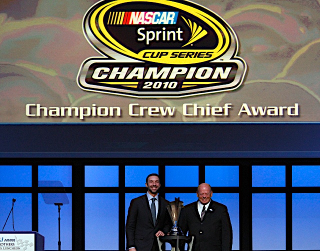 02 December, 2010: John Darby presents Chad Knaus the Champion Crew Chief Award during the Myers Brothers Awards Luncheon during 2010 NASCAR Sprint Cup Series Champions Week in Las Vegas, NV. (HHP/Harold Hinson)