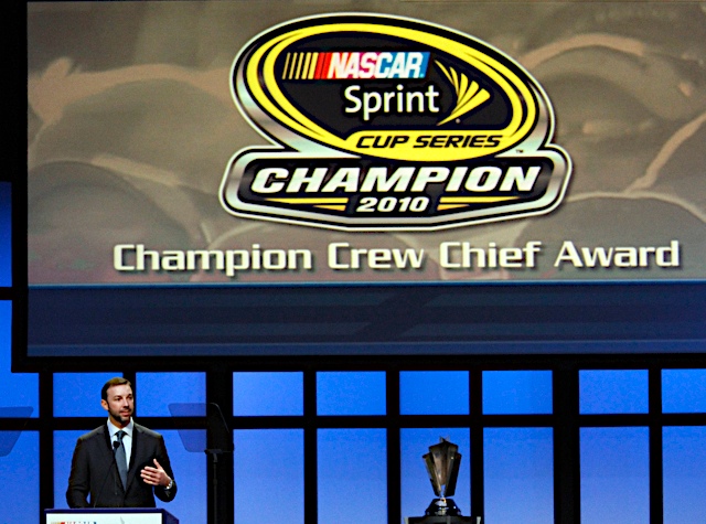 02 December, 2010: John Darby presents Chad Knaus the Champion Crew Chief Award during the Myers Brothers Awards Luncheon during 2010 NASCAR Sprint Cup Series Champions Week in Las Vegas, NV. (HHP/Harold Hinson)