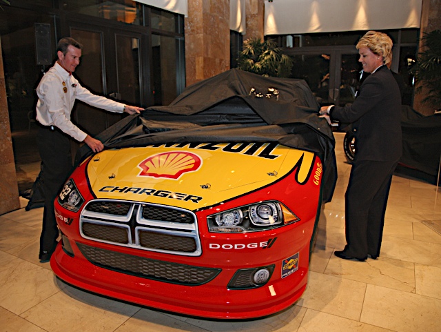 caption: 02 December, 2010: Kurt Busch and Roger Penske during Shell announcement during 2010 NASCAR Sprint Cup Series Champions Week in Las Vegas, NV. (HHP/Harold Hinson)
