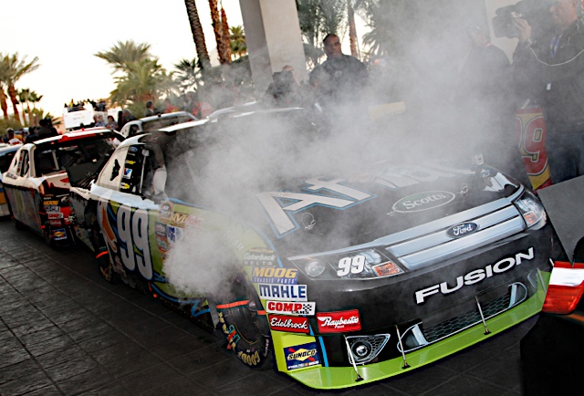 02 December, 2010: Carl Edwards car overheats during the Victory Lap during 2010 NASCAR Sprint Cup Series Champions Week in Las Vegas, NV. (HHP/Harold Hinson)