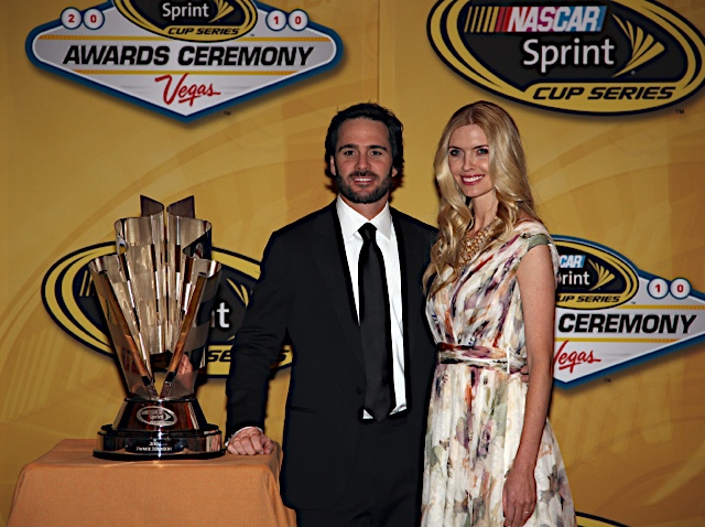 03 December, 2010: Jimmie Johnson with wife Chandra during the Awards Ceremony at the Wynn during 2010 NASCAR Sprint Cup Series Champions Week in Las Vegas, NV. (HHP/Harold Hinson)