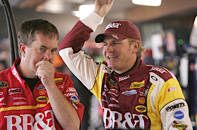 caption: 26 March 2010-Clint Bowyer, Shane Wilson during practice for the Goody"s 500 at the Martinsville Speedway in Martinsville, Va.(HHP Photo/Alan Marler)