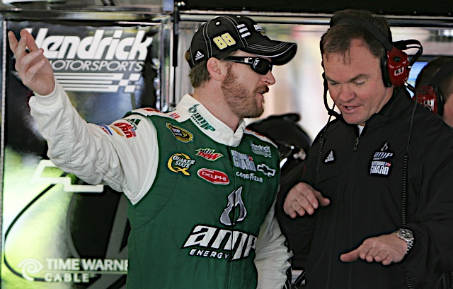 caption: 26 March 2010-Dale Earnhardt Jr. during practice for the Goody"s 500 at the Martinsville Speedway in Martinsville, Va.(HHP Photo/Alan Marler)