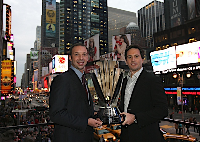 04 December 2008 - Jimmie Johnson and Chad Knaus in Times Square during Champions Week in New York City. (HHP/Harold Hinson)