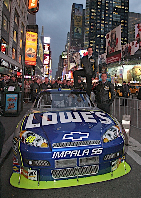 04 December 2008 - Jimmie Johnson and Chad Knaus in Times Square during Champions Week in New York City. (HHP/Harold Hinson)