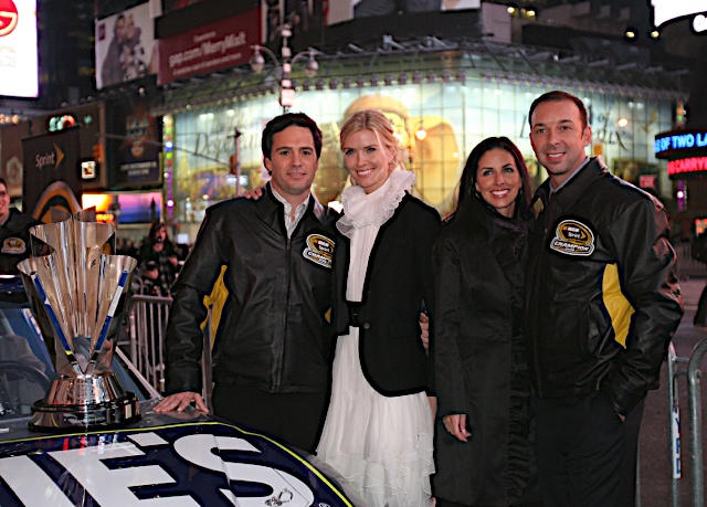 04 December 2008 - Jimmie Johnson and Chad Knaus in Times Square during Champions Week in New York City. (HHP/Harold Hinson)