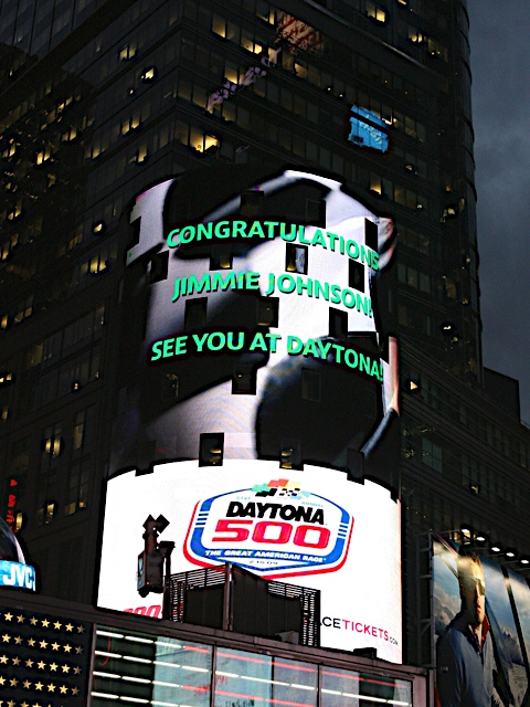 04 December 2008 - Jimmie Johnson in Times Square during Champions Week in New York City. (HHP/Harold Hinson)