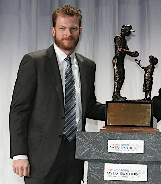 04 December 2008 - Dale Earnhardt Jr wins the Most Popular Driver Award during the Myers Brothers Luncheon during Champions Week in New York City. (HHP/Harold Hinson)