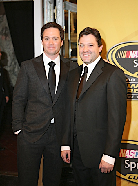 05 December 2008 - Jimmie Johnson and Tony Stewart at the 2008 NASCAR Sprint Cup Series Awards Ceremony at the Waldorf Astoria Hotel in New York City. (HHP/Harold Hinson)