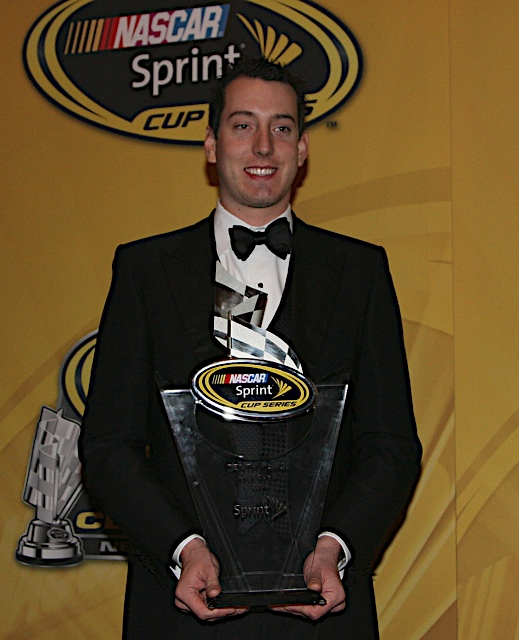 05 December 2008 - Kyle Busch and his tenth place finish trophy at the 2008 NASCAR Sprint Cup Series Awards Ceremony at the Waldorf Astoria Hotel in New York City. (HHP/Harold Hinson)