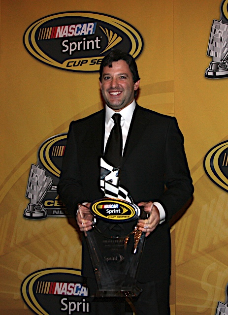 05 December 2008 - Tony Stewart with his ninth place finish trophy at the 2008 NASCAR Sprint Cup Series Awards Ceremony at the Waldorf Astoria Hotel in New York City. (HHP/Harold Hinson)