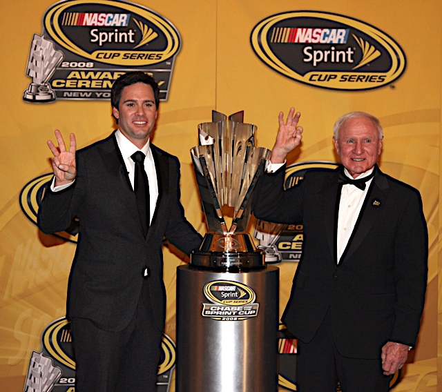 05 December 2008 - Jimmie Johnson with Cale Yarborough at the 2008 NASCAR Sprint Cup Series Awards Ceremony at the Waldorf Astoria Hotel in New York City. (HHP/Harold Hinson)