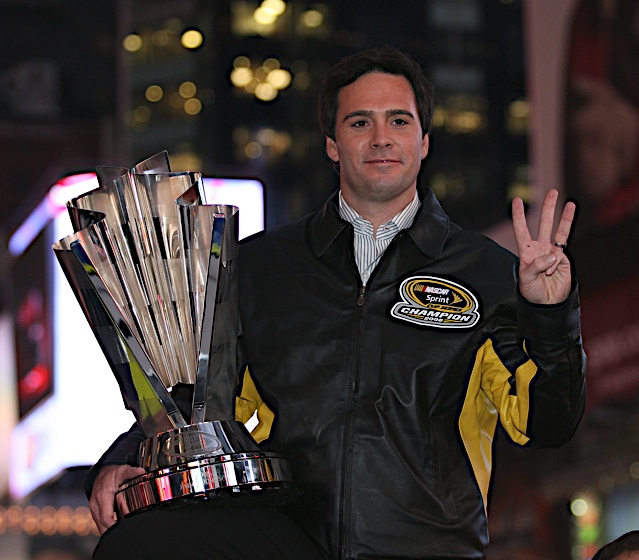 04 December 2008 - Jimmie Johnson in Times Square during Champions Week in New York City. (HHP/Harold Hinson)