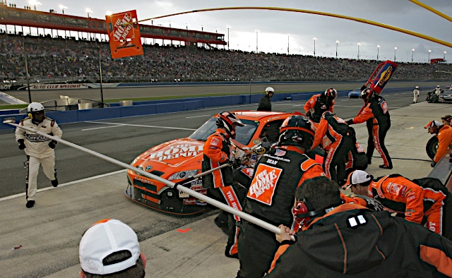 24 FEB 2008---Tony Stewart pits during the NSC Auto Club 500 race at the Auto Club Speedway, Fontana, Ca. (HHP/Rusty Burroughs)