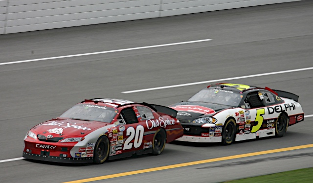 26 April 2008 - Tony Stewart and Dale Earnhardt Jr during the Aaron's 312 at Talladega Superspeedway in Talladega AL. (HHP/ Harold Hinson)