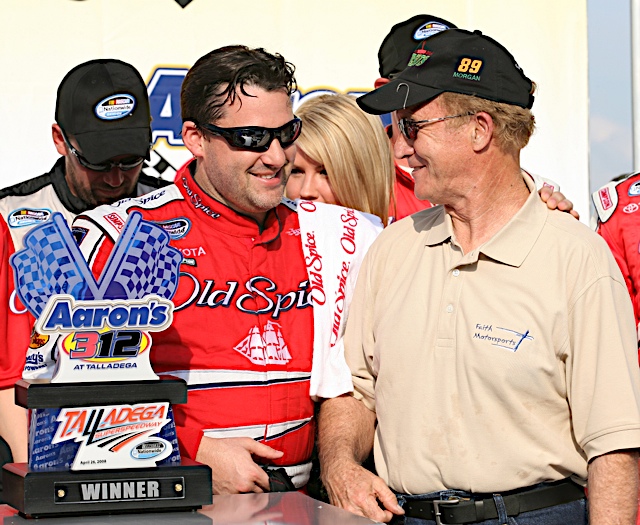 26 April 2008 - Morgan Shepherd congratulates Tony Stewart after he wins the Aaron's 312 at Talladega Superspeedway in Talladega AL. (HHP/ Harold Hinson)