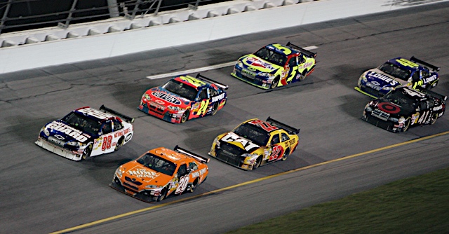 09 February 2008--Dale Earnhardt Jr. and Tony Stewart leads a pack of cars during the Bud Shootout at the Daytona International Speedway.(HHP Photo by Alan Marler)