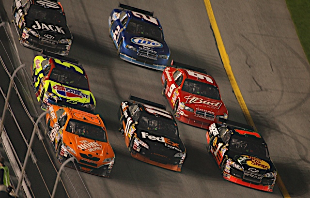 09 February 2008: Tony stewart, Denny Hamlin and Martin Truex Jr.during the Budweiser Shootout NASCAR Sprint Cup series race at Daytona International Speedway in Daytona Beach, FL. (HHP/Erik Perel)