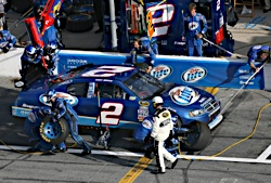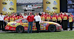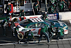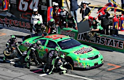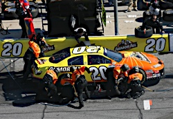16 February 2008: Teammates Kyle Busch, Tony Stewart and Denny Hamlin pit during...