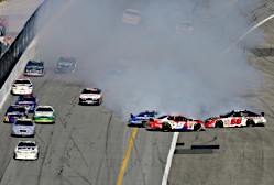 16 February 2008: Steve Wallace, Kasey Kahne and Kevin Harvick wreck during the ...