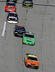 16 February 2008: Three-wide racing during the Camping World 300 NASCAR Nationwi...
