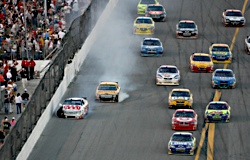 17 February 2008: Kurt Busch drives by as David Ragan wrecks during the Daytona ...
