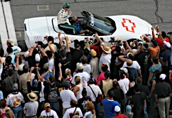 17 February 2008: Fans stream through the tunnel into the infield for the Dayton...