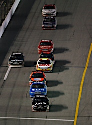 17 February 2008: Denny Hamlin and Tony Stewart lead the field during the Dayton...